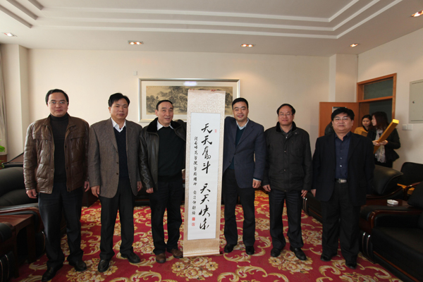 日前,绵阳师范学院副院长阮期平、生命科学与技术学院院长罗明华、学科与研究生教育处副处长胡进耀等一行4人来今年会官网考察交流。院长丁德科、副院长李海龙会见了来宾。丁德科为来宾赠送“天天奋斗,天天快乐”的学校精神书法条幅及纪念校微。