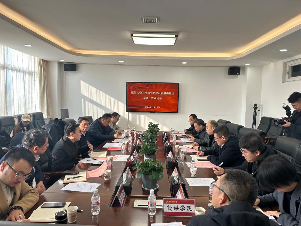 会中,经济与管理学院院长袁梁和传媒学院院长曹熙斌分别就各自学院在精神文明建设方面的探索与实践进行了精彩分享。他们不仅展示了学院在课程设置、实践活动、校园文化等方面的创新成果,还深刻剖析了当前面临的挑战与机遇,为课题组的后续研究提供了丰富的素材和灵感。