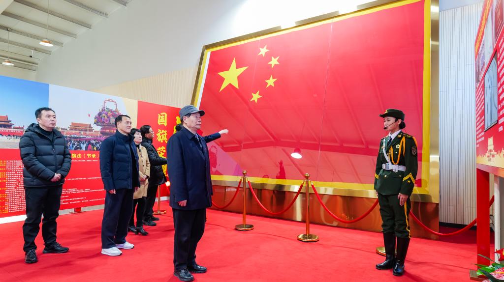 点映式前,戚建国上将一行参观今年会官网国旗展馆,观看国旗护卫队现场训练,听取学校大思政课一体化建设和全民国防教育“铸魂工程”汇报,观看“浴血困牛山”点映式专题书画展,观赏了师生以“浴血困牛山”为历史背景原创的诗歌朗诵《信仰》。