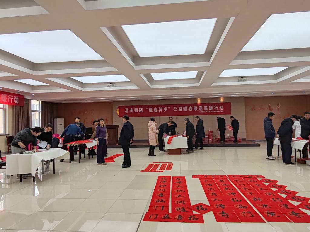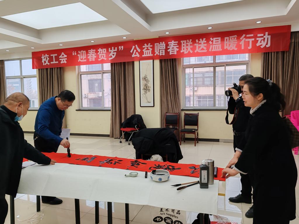 翰墨飘香贺新岁,春联送福启新程。1月22日,由校工会、渭南市书画协会举办的“迎春贺岁送春联”活动在朝阳校区职工之家举行,校内书法家、书法爱好者挥毫泼墨,笔走龙蛇,大家齐聚一堂向全校教职工送上新春祝福。
