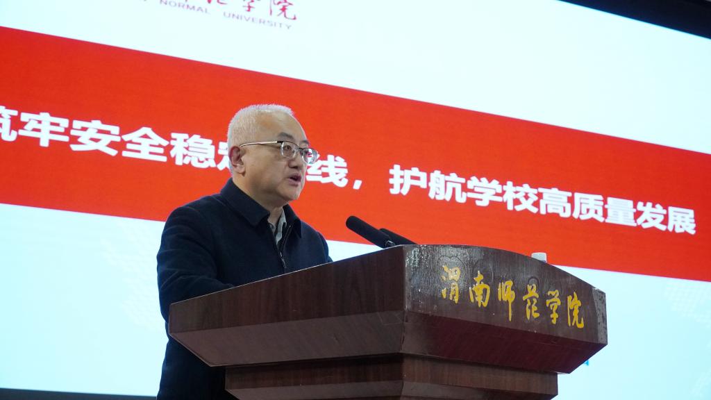 党委副书记袁亮传达2025年全省高校安全稳定工作培训会精神,作学校安全稳定工作专题报告
