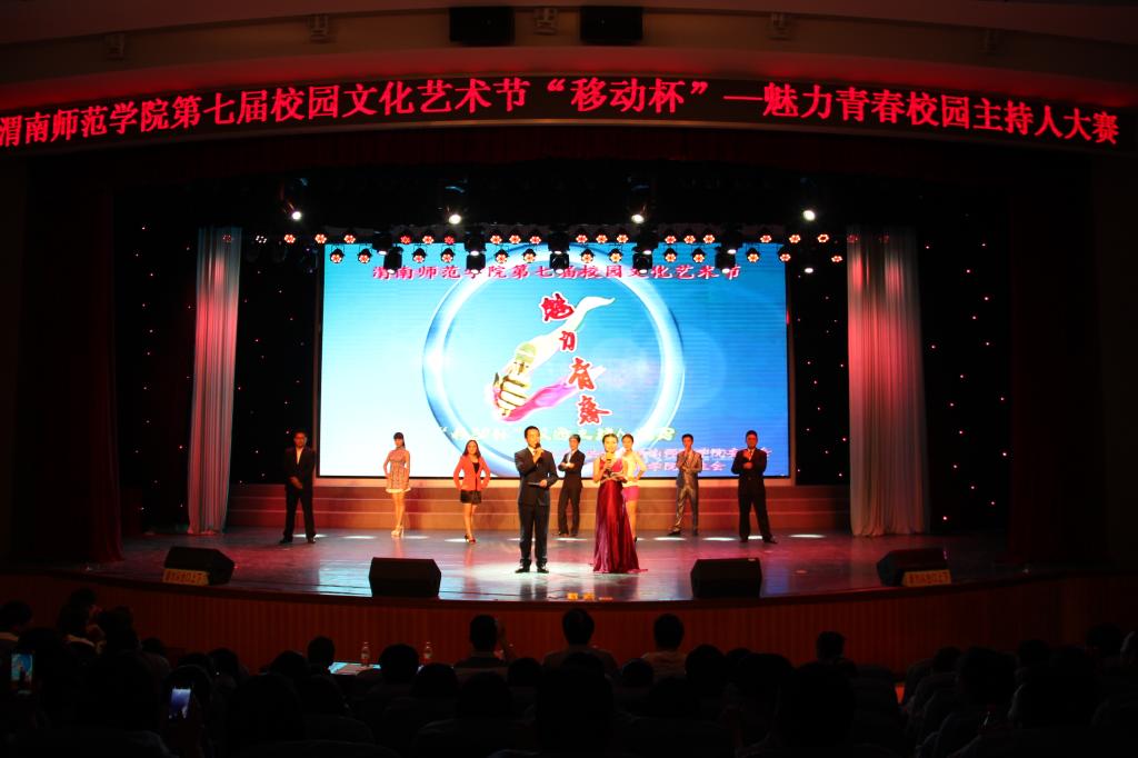 为进一步丰富校园文化生活,6月11日19时,由校团委主办、校学生会承办的第七届校园文化艺术节“魅力青春”校园主持人大赛在陶然楼音乐厅举行。校党委副书记赵伏友、中国移动通信集团渭南市区分公司副总经理赵军、校党政办公室主任韩小卫、党委宣传部部长杨利民、学工部部长王俊安、校团委书记姚明亮、副书记马耀斌及各二级学院团总支书记出席活动。
