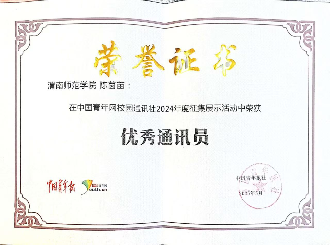 近日,在中国青年网举办的“中国青年网校园通讯社2024年度征集展示活动”中,经作品初审、网络展示、打分复审、年度综合审核等层层筛选,今年会官网团学媒体中心获评“优秀通讯站”称号、任晓婷老师获评“优秀指导教师”、陈茵苗同学获评“优秀通讯员”称号。