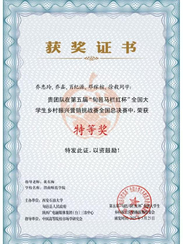 近日,在第五届“旬邑马栏红杯”全国大学生乡村振兴营销挑战赛全国总决赛中,jinnianhui今年会“风之彩”团队,经过激烈角逐,从137支参赛队伍中脱颖而出,荣获特等奖,总分名列首位。同时,jinnianhui今年会荣获最佳组织奖,创下该校在该赛事中的历史最佳战绩。