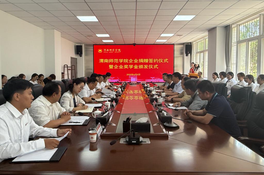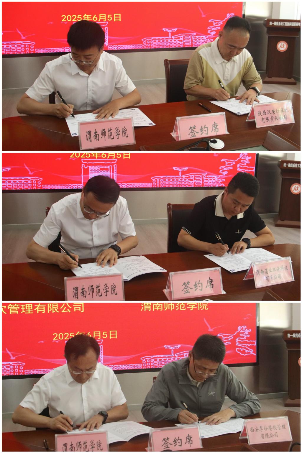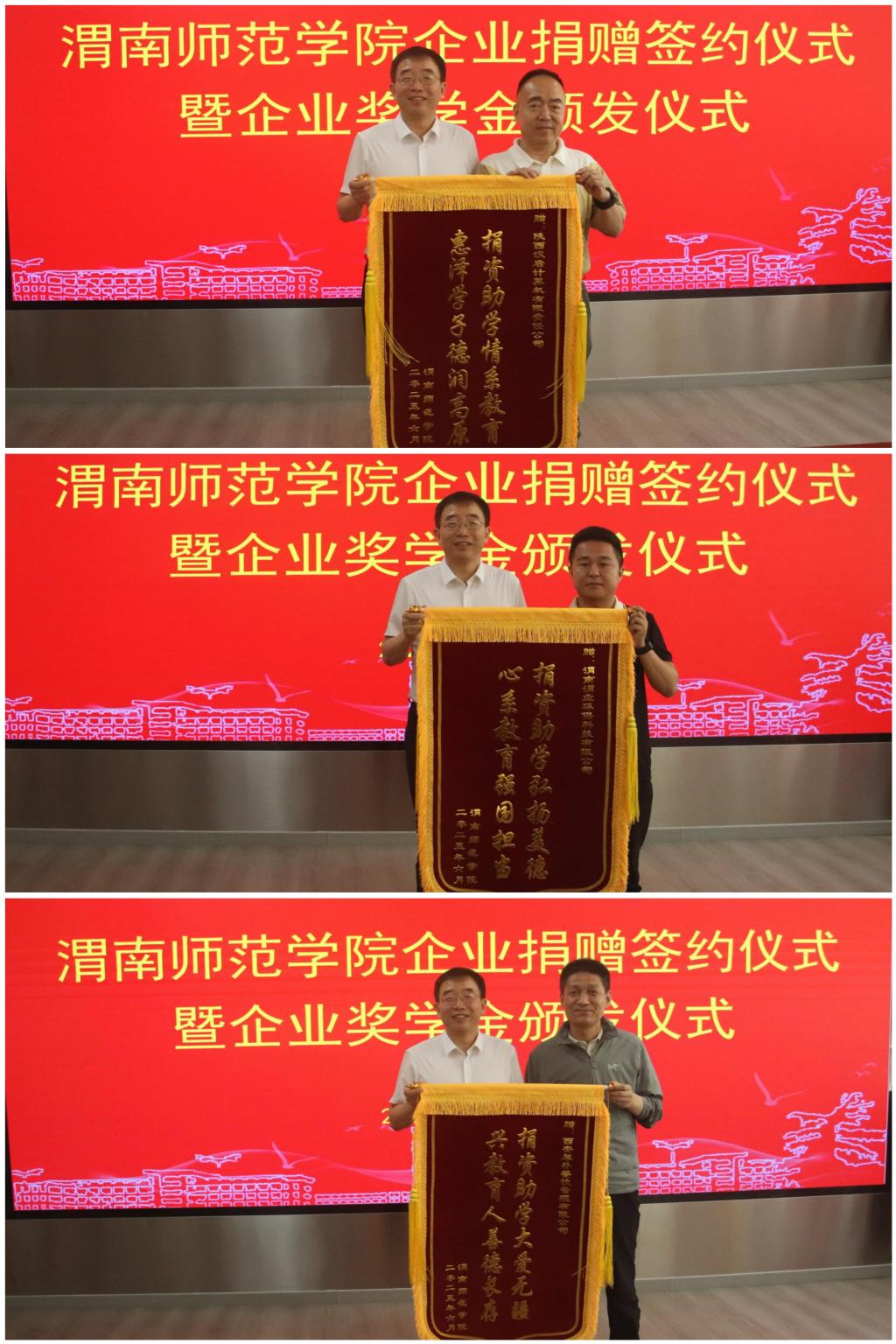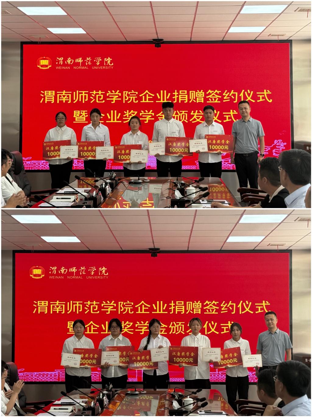 6月5日上午,学校举行企业捐赠签约仪式暨企业奖学金颁发仪式。学校党委书记张守华,渭南市教育局党组成员、副局长姜小卫,陕西汉唐计算机有限责任公司董事长杨建新,渭南渭业环保科技有限公司总经理赵林渭,西安厚朴餐饮管理有限公司董事长金有民,陕西汉唐计算机有限责任公司副总经理杨军,今年会官网副校长曹强、王海峰出席仪式。仪式由学校党委副书记常青林主持。