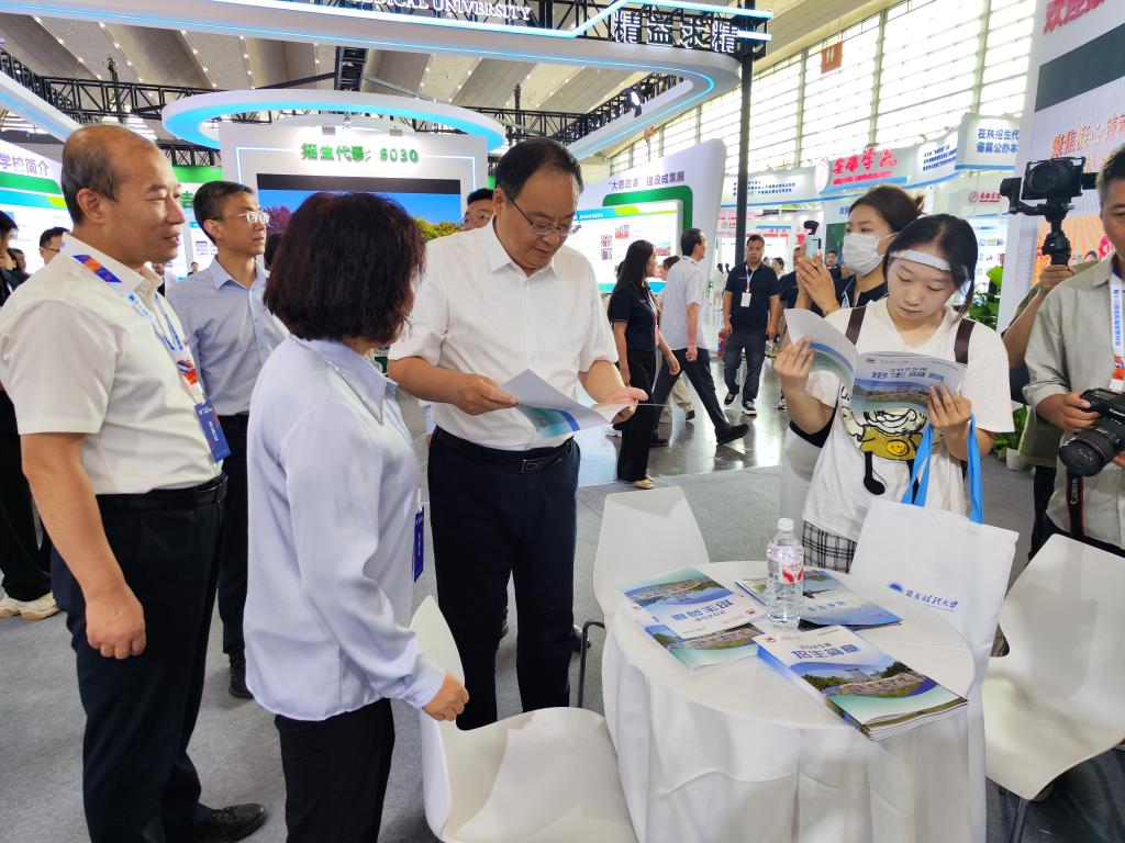 中共陕西省委教育工委书记、省教育厅厅长王树声莅临今年会官网展位参观指导,校长李强、党委副书记常青林、副校长王菊霞等校领导到展区指导工作并慰问工作人员和学生志愿者。