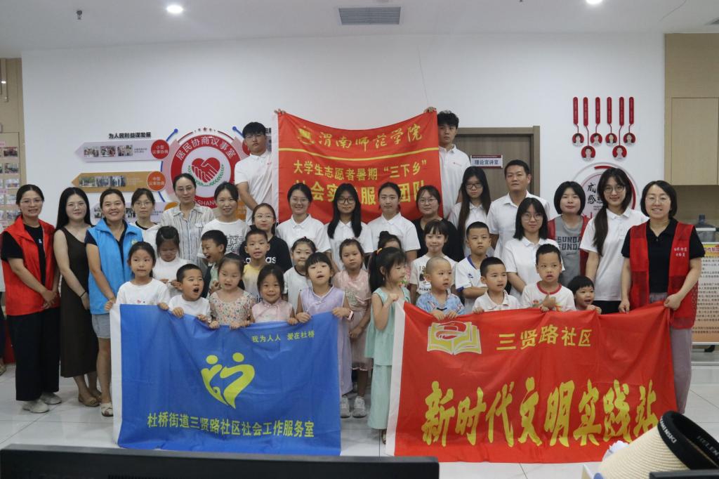 (二)青少年关爱马克思主义学院“助力儿童成长”团开展“少年警校”项目,通过“3D微缩交通世界”使儿童与家长的交通安全知识知晓率大幅提升;在留守儿童服务站开展“积木拼搭”“西瓜扇制作”等活动,筑牢成长防线。教育科学学院在临渭区三贤路社区带领小朋友们体验扭扭棒与纸浆画的创作乐趣。