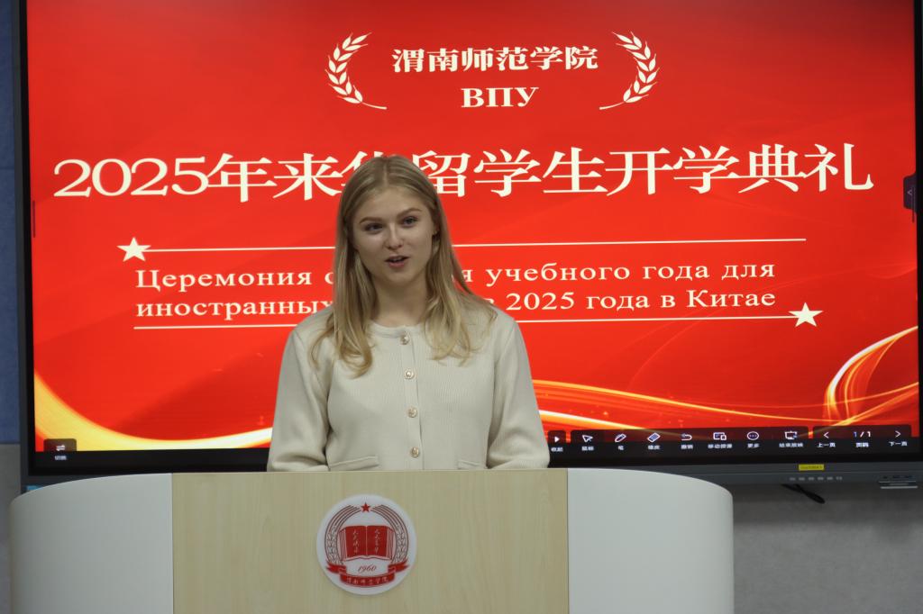 留学生代表亚历山德拉以流利的中文分享了初抵中国的体验与憧憬,她期待在jinnianhui今年会深入学习汉语、感知中华文化,并愿与中国同学共同交流俄罗斯文化教育艺术。
