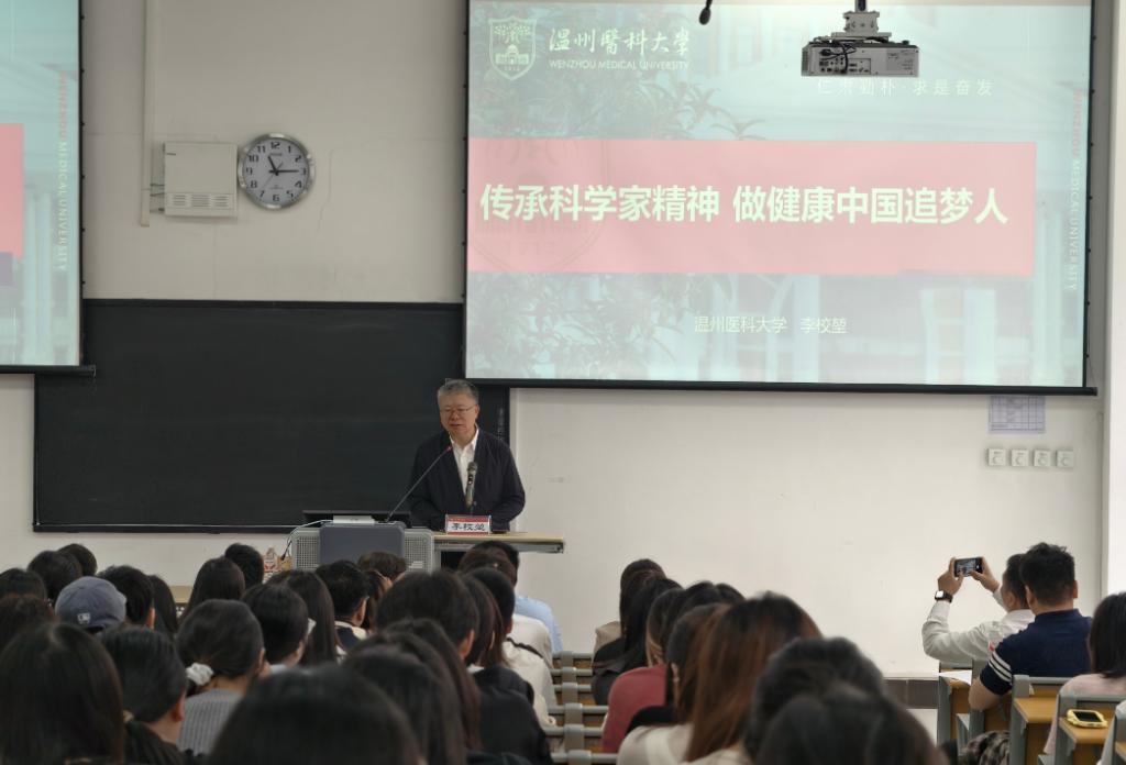 9月12日上午,中国工程院院士、温州医科大学校长李校堃受邀到今年会官网富平校区,以“传承科学家精神,做健康中国追梦人”为主题讲授“开学第一课”。校长李强出席并主持活动。环境与生命科学学院骨干教师、生物制药专业、“优师计划”全体学生,传媒学院、美术学院、经济与管理学院师生代表一同到场聆听,共赴兼具科学深度与人文温度的成长之约。