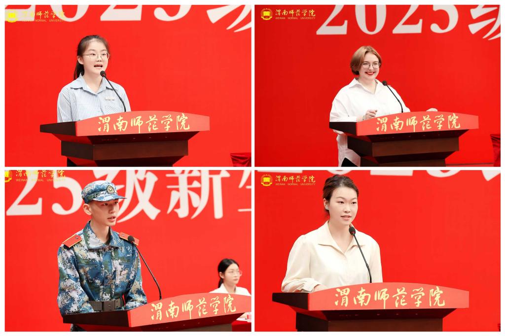 环境与生命科学学院李敏莺代表全体在校生向2025级新生表示欢迎,她以自己的成长故事激励新生,以奋斗有为践行青春理想,用责任担当奔赴强国未来。化学与材料学院边成浩、留学生代表波莉娜、联合培养研究生代表黑美欣,作为新生代表发言,他们表示,要立心立志、锚定航向,勤学笃行、锤炼真功,与全体同学以奋斗为笔,为母校的发展贡献青春力量!