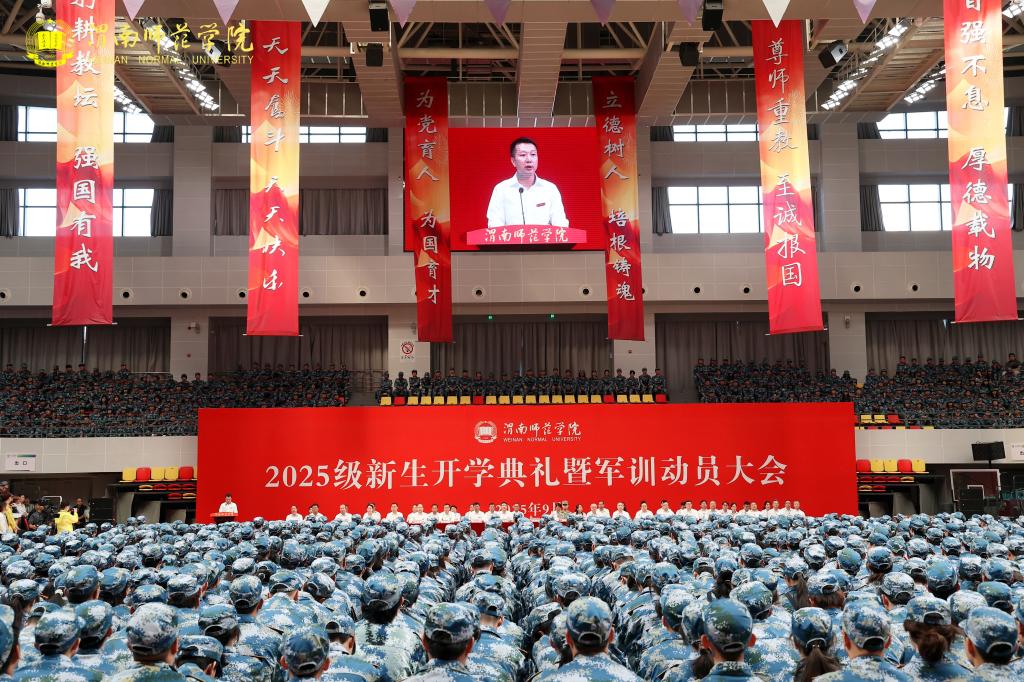 学校党委委员,迎新工作领导小组、军训工作领导小组成员单位负责人,参训教官,各二级学院分管学生工作领导、新生辅导员以及2025级4843名新生参加大会。(通讯员 孙佳荣 审核人 田耿辉)