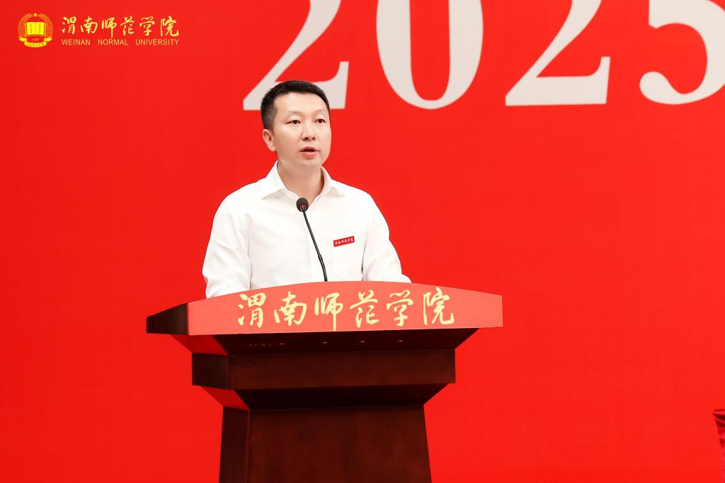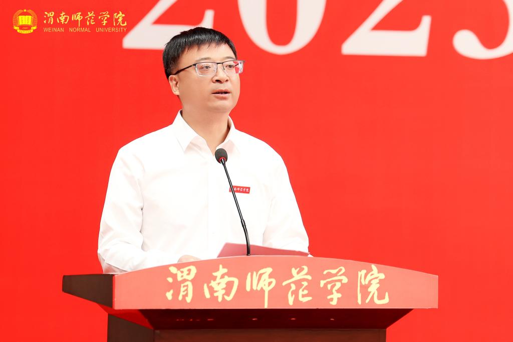 李强发表题为“青春奋楫正当时 强国追梦启新程”的讲话。他代表学校向2025级新生致以欢迎,向承训部队官兵致以崇高敬意,向培育新生的家长与教师群体表达诚挚感谢。他指出,今年学校物理类、历史类录取分数均创历史新高,充分彰显学校办学质量的提升,同时立足办学历史底蕴,围绕教师教育特色鲜明的多科性应用型高校定位,介绍了国家级、省级一流专业建设成果,全面展现学校作为陕西省师范教育排头兵的深厚积累,以及六十五载为国家培养大批优秀人才、服务区域与社会发展的坚实足迹。