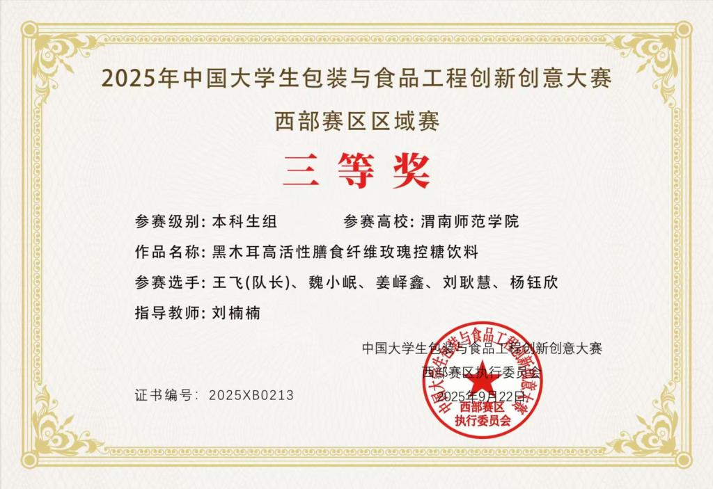 据悉,中国大学生包装与食品工程创新创意大赛作为包装与食品工程领域的重要赛事,分华北、东北、中南、华东、西部五个赛区,旨在搭建高校学术交流与实践创新平台,激发大学生在包装设计、食品加工技术、绿色供应链等领域的创新思维,推动行业人才培养与产业发展深度融合,本届西部赛区赛事吸引了来自西部多省份高校的数百支本科生及研究生团队参赛,竞争尤为激烈。未来,今年会官网将继续以各类学科竞赛为抓手,鼓励学生积极参与实践创新活动,不断提升学生的专业素养与综合能力,为行业培养更多高素质创新型人才。(通讯员 刘楠楠 审核人 吴逸群)