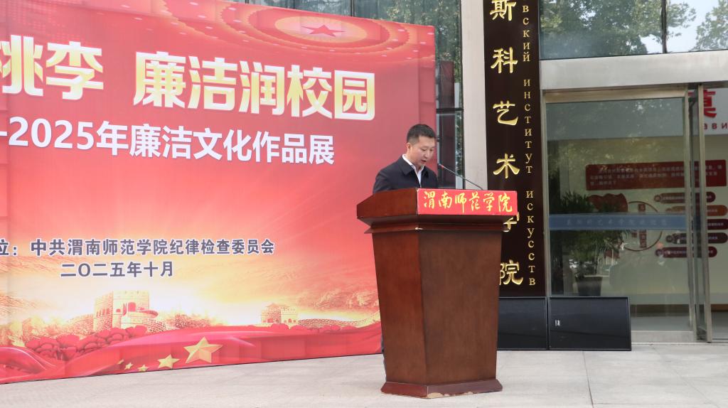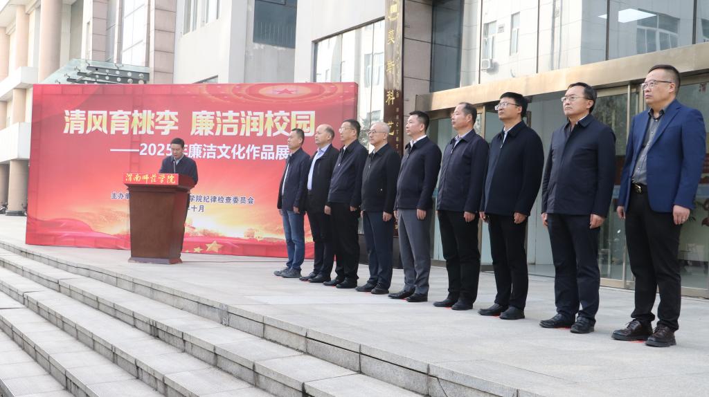 10月15日下午,学校在逸夫楼前举办“清风育桃李 廉洁润校园”2025年廉洁文化作品展开幕式。党委副书记、校长李强出席开幕式,开幕式由党委副书记、纪委书记、监察专员肖耀刚主持。