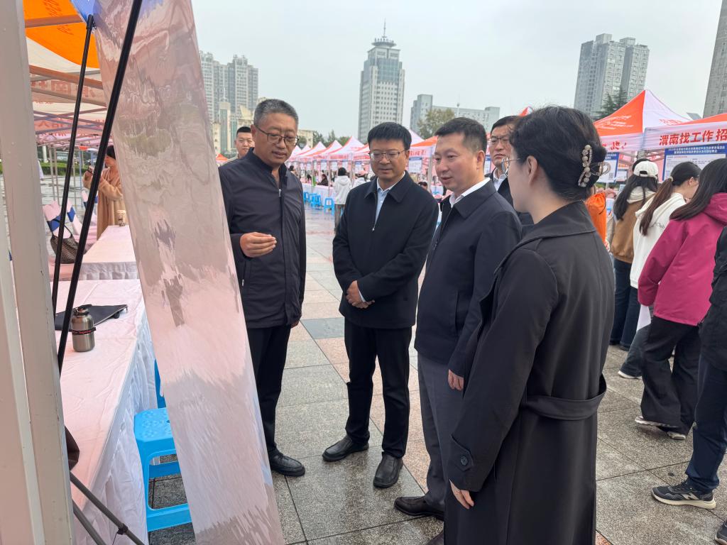 学校党委副书记、校长李强,党委副书记汪勇、袁亮、常青林,副校长卢爱刚,渭南市人力资源和社会保障局二级调研员董建明等共同深入招聘会现场指导,与多家企业代表、求职毕业生亲切交流,深入询问岗位招聘细节与毕业生求职进展,精准掌握供需双方实际情况。