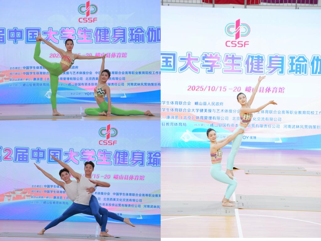 10月15日至10月20日,今年会官网健身瑜伽代表队参加第二届中国大学生健身瑜伽锦标赛。在今年会官网体育学院院长李春兰领队和教练员黄璐的指导下,由陈欣楠、邱锐、郭禹杉等8名队员组成的参赛队凭借精湛技艺脱颖而出,斩获丙组一级女子双人自选项目第一名、甲组一级男子双人自选项目第二名、甲组一级女子双人自选项目第五名、甲组一级规定小集体项目第五名的优异成绩。