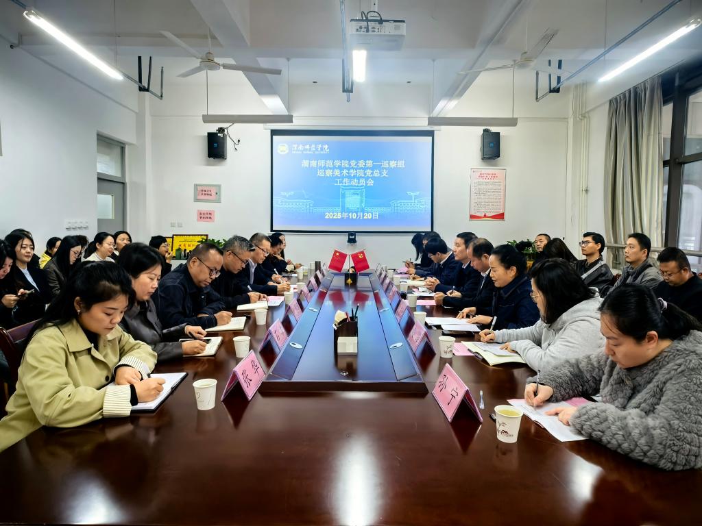 党委巡察办公室主任韩文娟宣读巡察通知,第一、第二、第三巡察组组长朱芳转、魏光民、马利涛分别作巡察动员,美术学院党总支书记周德锋、传媒学院党总支书记田康顺、附属单位党总支书记李维喆分别主持会议并作表态发言。