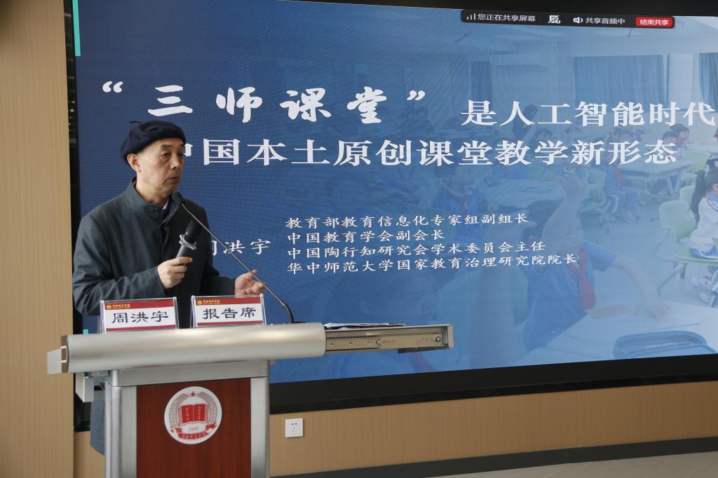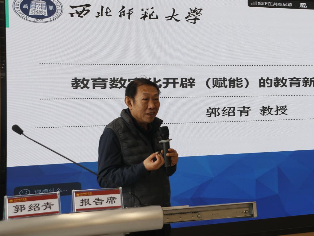主旨报告由副校长曹强主持。华中师范大学周洪宇教授、北京师范大学朱旭东教授、江南大学陈明选教授、西北师范大学郭绍青教授和陕西师范大学李忠教授分别就“三师课堂”及陶行知教育精神、教师教育“学科群”建设、教师的角色升维与能力重塑、教育新赛道等多个方面进行了深入研讨,为数字化赋能教师发展提供了前瞻性的思路与切实可行的建议。