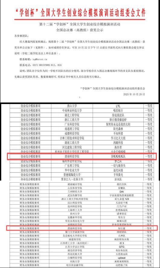 “学创杯”全国大学生创业综合模拟大赛由高等学校国家级实验教学示范中心联席会经管学科组、中国陶行知研究会主办,是全国创业类最具影响力的赛事之一。“学创杯”全国大学生创业综合模拟大赛是经教育部认定的国家级A类赛事。经济与管理学院高度重视本次专业竞赛,关注训练进度,组织指导教师团队,给予最大的支持和鼓励。参赛选手们在指导老师的带领下,坚持不懈,永不言弃,提升了分析问题、解决问题的能力,充分展现了经济与管理学院参赛选手的风采。学院将以此为契机,进一步总结经验、深化赛事交流培训活动,充分发挥优秀参赛学生的示范引领作用。持续激发学生的创新精神和创业意识,全面提升学生的创新创业能力和综合素质,为培养更多具有创新精神和实践能力的优秀人才贡献力量。(通讯员 成佳 审核人 袁梁)