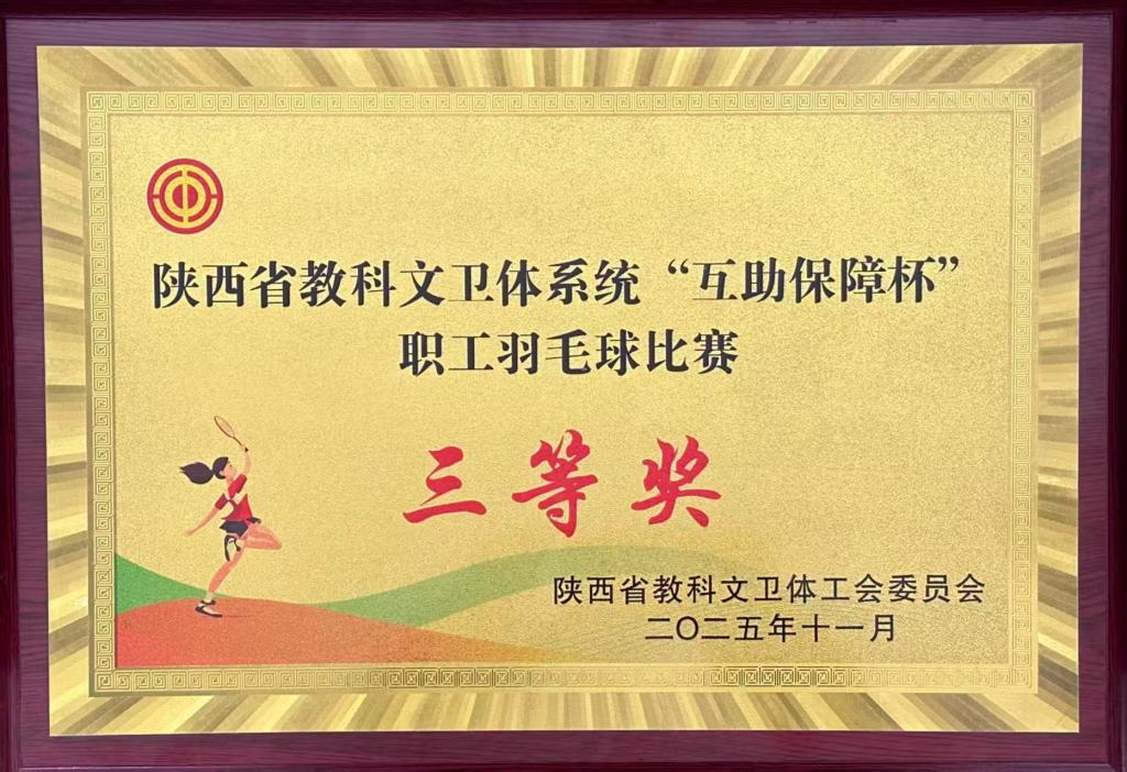 10月30日至11月2日,由陕西省教科文卫体工会主办,西北农林科技大学承办的“中国梦·劳动美——凝心铸魂跟党走 团结奋斗新征程”陕西省教科文卫体系统职工羽毛球比赛在西北农林科技大学举行。今年会官网教职工羽毛球代表队凭借出色的发挥和顽强的拼搏荣获三等奖。