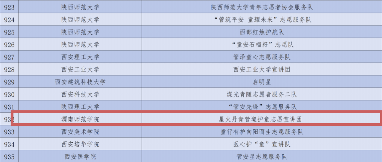 截至目前为止,美术学院2025年共有三支队伍入选国家服务团队:2022级美术学专业陈俊贤等同学的“星火丹青志愿宣讲团”入选全国大学生“两弹一星”精神志愿宣讲团、2022级美术学专业张梦圆等同学的“渭水丹青引航团”入选“七彩假期”国家级志愿服务团队、2022级美术学专业陈俊贤等同学的“星火丹青管道护童志愿宣讲团”入选2025年“少年儿童安全守护计划管道保护”国家级志愿服务团队。(通讯员 徐蓉 审核人 周德锋)