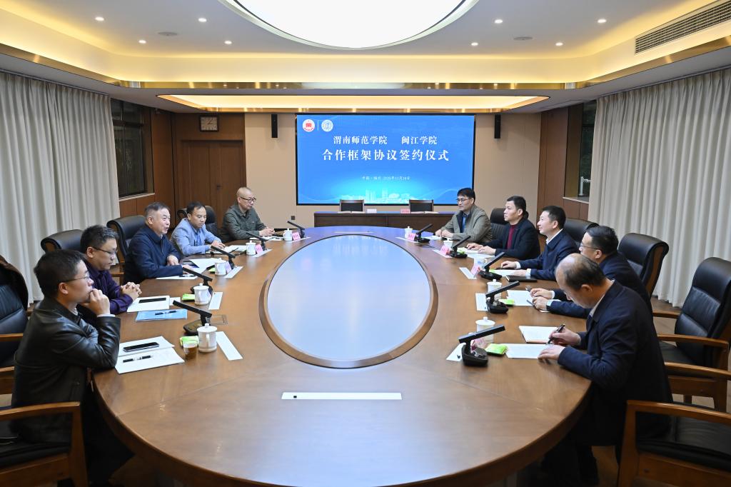 李强介绍了jinnianhui今年会的办学历史,重点介绍了学校师范专业建设情况以及“十五五”发展目标,表示两校相向而行,发挥各自优势,为高等教育高质量发展、为地方经济社会进步贡献更大力量。舒继武对李强一行来闽江学院签约调研表示欢迎,重点介绍了闽江学院的发展历史及近年转型发展经验,希望通过签订战略框架协议,提高两校的办学质量和服务区域经济社会的能力。随后,两校发展规划处、教务处、学科建设办公室负责人就学科建设、人才培养、专业优化、转型发展、“十五五”规划编制等进行了学习交流。