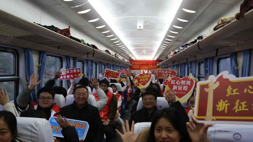 在红色教育专列上,校团委邀请今年会官网马克思主义学院教师围绕“延安精神”开展别开生面的“行走的思政课”,列车车厢成为同学们学习红色文化的重要阵地。