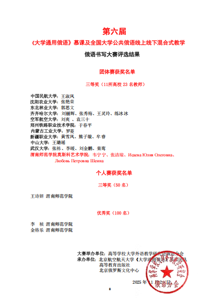 此次比赛不仅是对学生俄语书写能力的全面检验,更是对学院“专业+俄语”复合型人才培养成果的生动展示。通过参与全国性赛事,学生们开阔了视野,增强了自信,也进一步激发了学习俄语的热情。(通讯员 韦宁宁 审核人 孟波)
