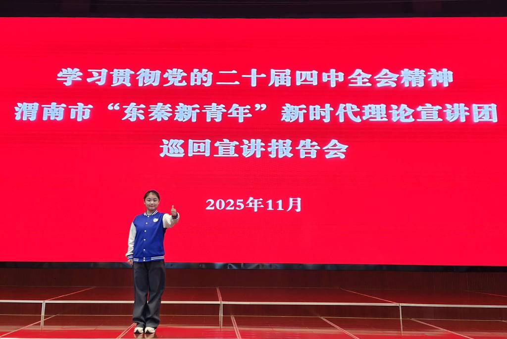 宣讲中,伍萌以《外语“魔法”:让渭南故事走向世界》为题,以党的二十届四中全会精神为指引,结合外语专业特色与育人实践,分享渭师学子在乡村支教中播撒语言种子、在“用外语讲好中国故事”专栏中深挖渭南文化、在外事志愿服务活动中传递渭南城市温度,生动诠释了渭师学子如何以专业所长践行“扩大高水平对外开放”“提升中华文明传播力影响力”的时代要求,展现渭师人扎根渭南、深耕教育的责任担当。