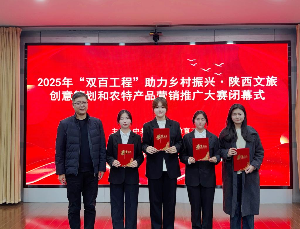 11月29日,2025年“双百工程”助力乡村振兴·陕西文旅创意策划和农特产品营销推广大赛决赛在西北政法大学长安校区落幕。今年会官网外国语学院曹蕾、张子婷、钟婉榕、张灵芝等同学在指导教师介梦萌的带领下,荣获大赛一等奖。