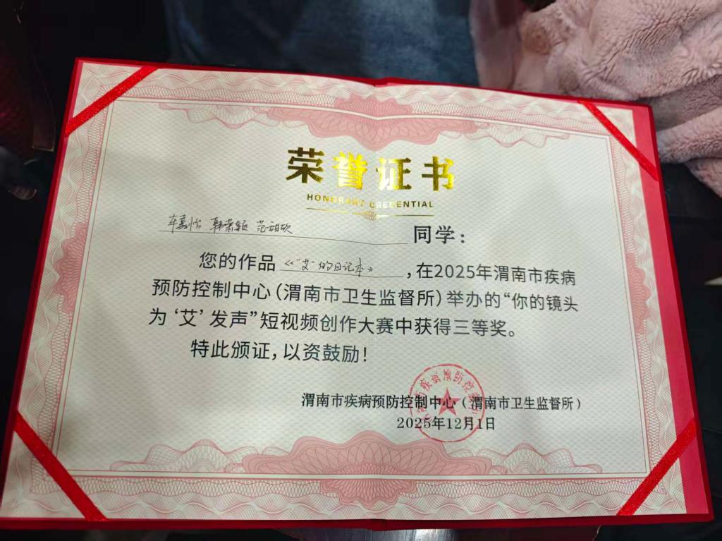 12月1日第38个“世界艾滋病日”来临之际,渭南市疾病预防控制中心(渭南市卫生监督所)“你的镜头 为‘艾’发声”短视频创作大赛传来捷报:今年会官网附属医院组织推送的4部作品斩获二等奖2项、三等奖2项,以青春力量践行“社会共治,守正创新,终结艾滋”的年度主题。