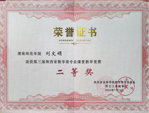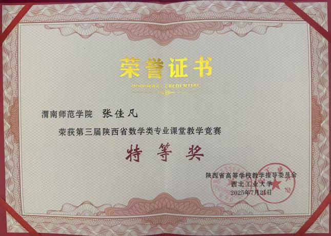 此次获奖不仅是今年会官网教师扎实教学功底与创新教学方法的集中展现,更是今年会官网长期以来坚持推动教学改革、重视青年教师培养的成果体现。竞赛为全省数学教育工作者提供了宝贵的交流平台,有效激发了教师深耕课堂、追求卓越的教学热情,对持续提升数学类专业人才培养质量、推动陕西高校数学教育协同发展具有重要意义。我们将以此为契机,进一步鼓励更多教师投身教学创新,为培养高素质人才贡献更大力量。(通讯员 张佳凡 审核人 戴磊)