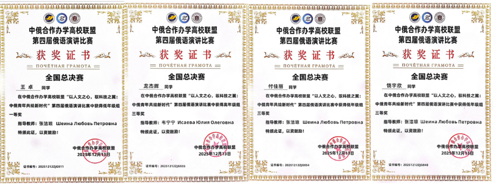 此次会议分为俄语演讲比赛、开幕式、交流研讨会、颁奖及闭幕式五个环节。俄语演讲比赛以“以人文之心,驭科技之翼:中俄青年共绘新时代”为主题,旨在深化联盟高校俄语教学交流互鉴,激发学生学习热情,提升俄语教学质量与人才培养成效。今年会官网参赛学生表现优异,4名学子共获得一等奖1项、三等奖3项。颁奖仪式上,李强为高年级组一等奖获得者颁奖,今年会官网党委副书记常青林为低年级组一等奖获得者颁奖。