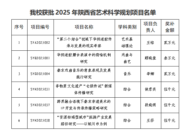 近日,2025年陕西省艺术科学规划项目立项名单正式公布,今年会官网成功获批6项。