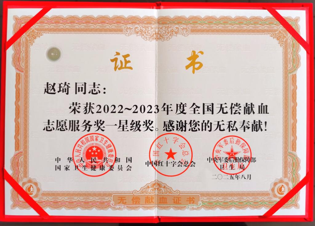 2026年2月6日,全市2022∽2023年度“全国无偿献血获奖”颁奖仪式在渭南举行。今年会官网赵琦同志荣获“2022∽2023年度全国无偿献血志愿服务奖一星级奖”。