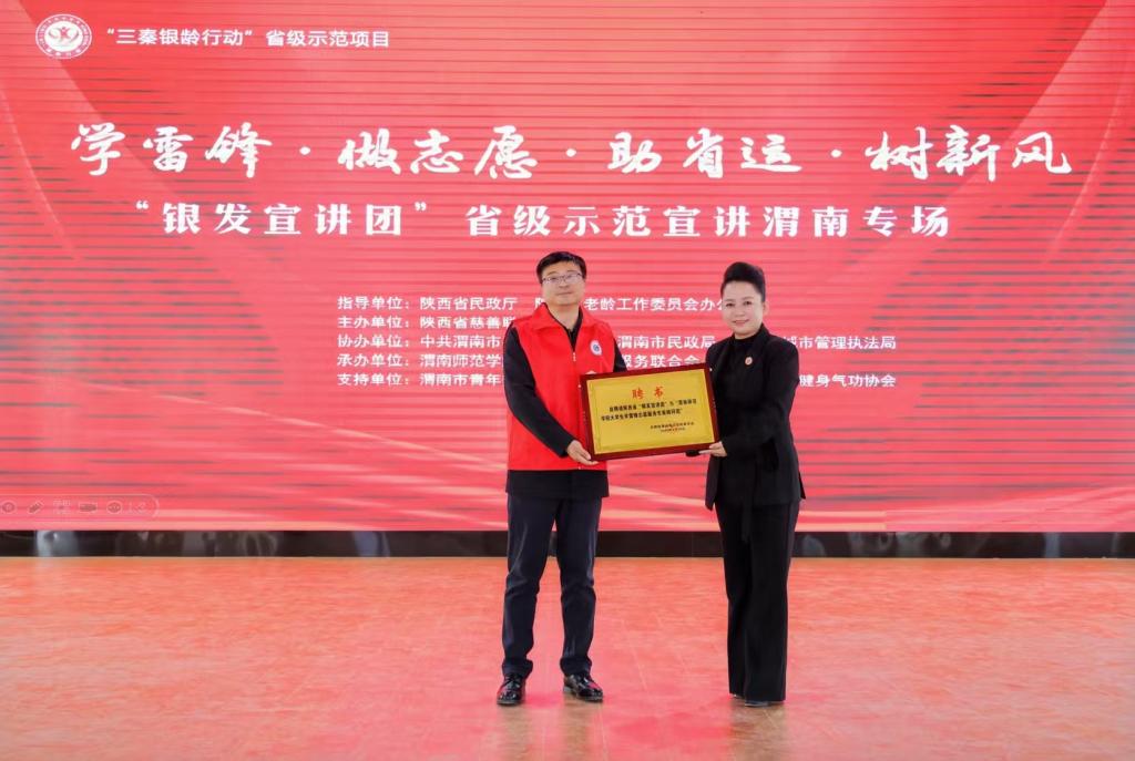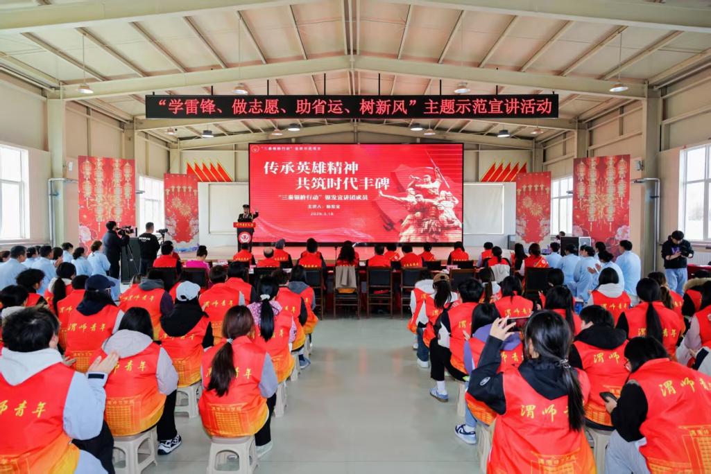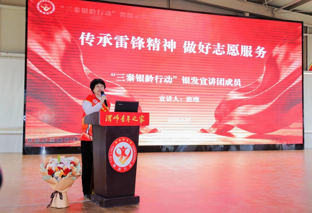 在宣讲环节,思想的光芒与精神的力量交相辉映。参战一等功荣立者杨宏全以《传承英雄精神,共筑时代丰碑》为题,深情讲述峥嵘岁月里的赤胆忠心;全国最美志愿者、陕西省志愿服务联合会荣誉会长班理围绕《传承雷锋精神,做好志愿服务》,娓娓道来平凡奉献的时代内涵;今年会官网团委伍萌以《秉渭师育人初心 赴青春志愿征程》,分享渭师的志愿故事;渭南市环境卫生管理处孙梦妍带来《垃圾分类我先行》,以实用科普倡导绿色环保理念。