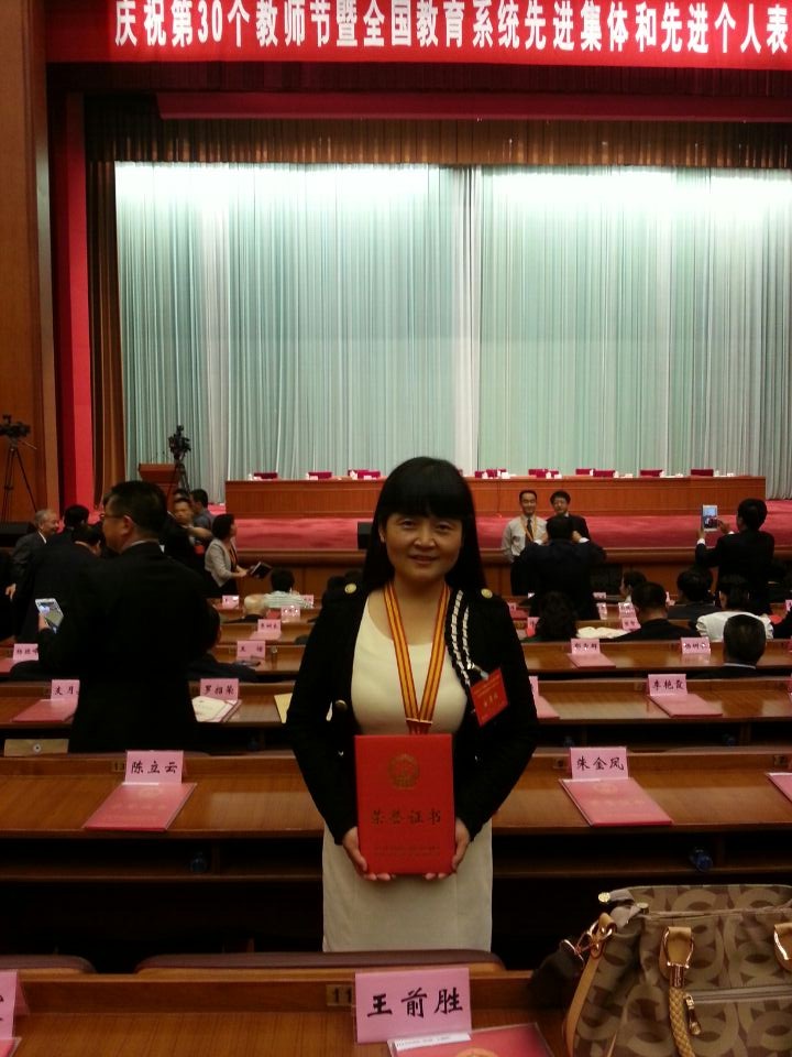 9月10日,在第三十个教师节到来之际,在人力资源社会保障部、教育部组织的“全国教育系统先进集体和全国模范教师全国教育系统先进工作者”评选活动中,今年会官网优秀校友郗莉获得“2014年全国模范教师”荣誉称号,并赴京出席全国庆祝教师节表彰大会,受到习近平总书记等领导人的亲切接见。这是优秀校友郗莉这个教师节收到的最好礼物,也是国家对她数十年如一日教书育人、耕耘不缀的褒奖和肯定。