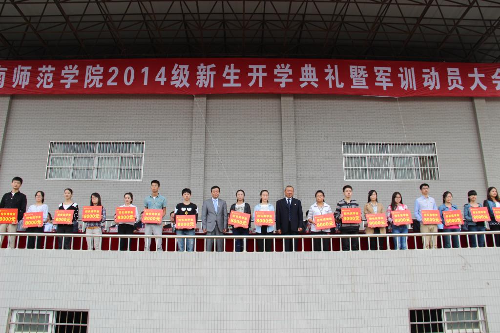 会上,党委书记张金安和院长丁德科共同为18名校长奖学金获得者颁奖,杨小渭委员就军训工作做了动员和安排,王深晗同学和李洋同学分别作为新老生代表发言。