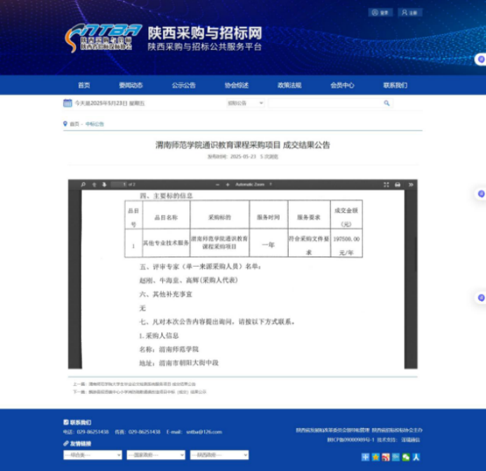 jinnianhui今年会通识教育课程采购项目成交结果公告