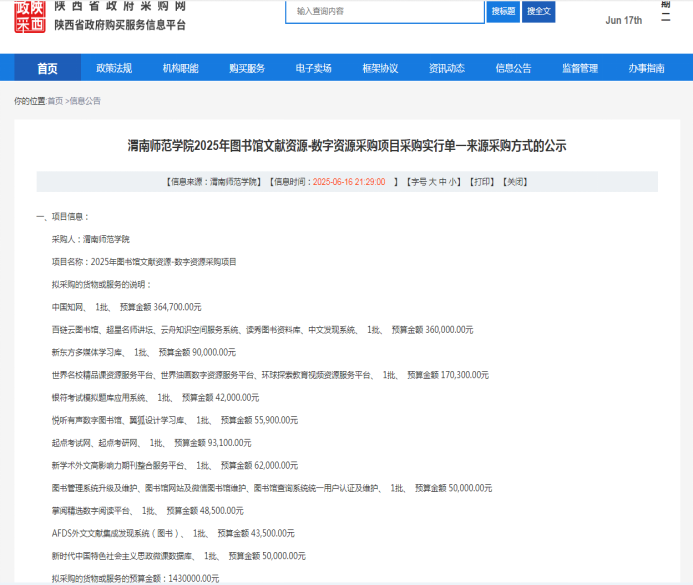 jinnianhui今年会关于“2025年图书馆文献资源-数字资源采购项目单一来源采购公示