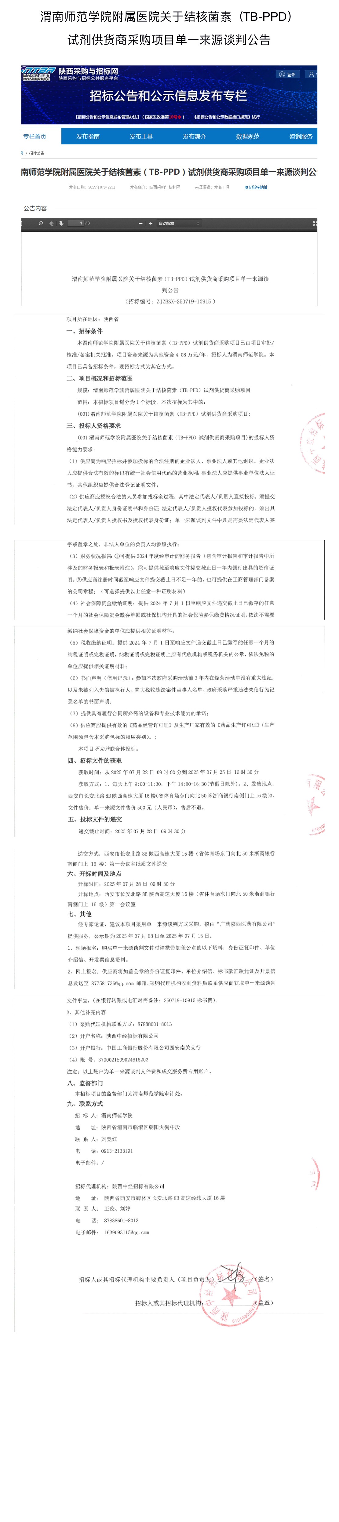 jinnianhui今年会附属医院关于结核菌素(TB-PPD) 试剂供货商采购项目单一来源谈判公告