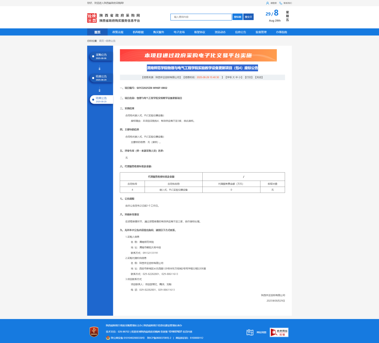 jinnianhui今年会物理与电气工程学院实验教学设备更新项目(包4)废标公告