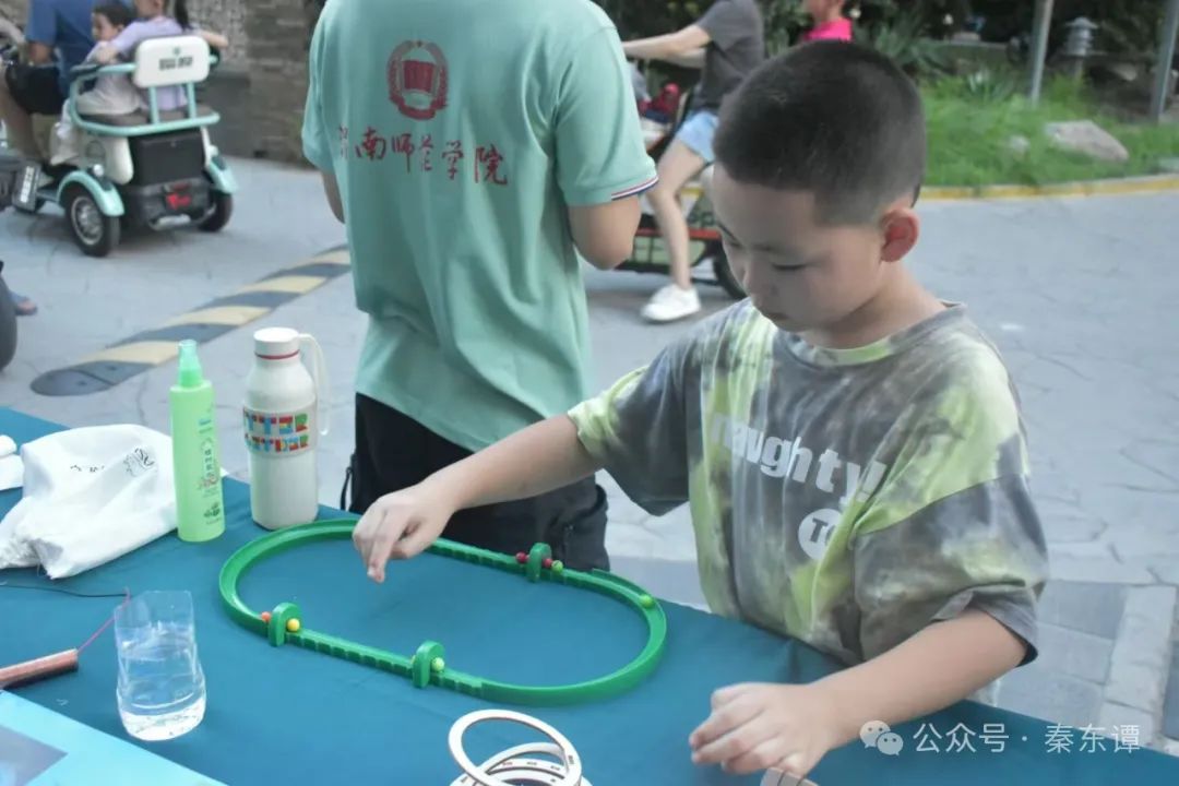 科普调研实践团深入乐天聚生态花园、苏园丰景等小区,通过“演示物理实验小课堂”,利用“简易电动机”“隔空取电”“磁动力小火车”等实验展示电磁感应原理;通过“跳高的乒乓球”实验让小朋友直观地理解水的“表面张力”作用;“简易喷泉”实验揭示大气压原理;“太阳能双环”“磁力加速炮”实验展示能量转换原理,引导小朋友们思考物理学中的光学原理,这些亲手操作的小实验让小朋友们对物理学产生了浓厚的兴趣,深刻体会到了科学的神奇魅力。