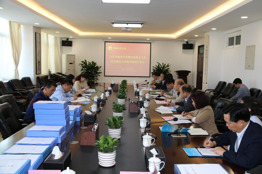 9月6日,以省教育厅纪检组组长刘振涛为组长的省政府教育督查组一行,莅临学校检查2017年秋季开学暨年度重点工作落实情况及学校党风廉政建设情况。学院党委副书记赵伏友,副院长卢爱刚,院长助理、党政办公室主任韩小卫及相关职能部门负责人出席汇报会。