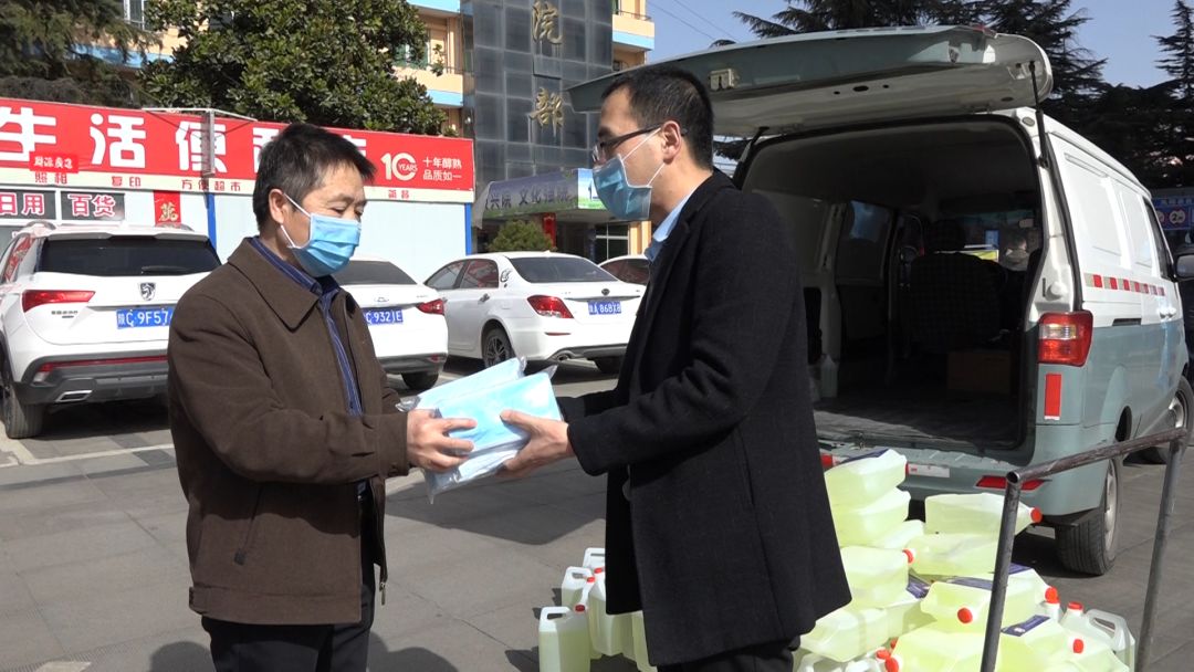 近日,今年会官网人文学院校友、凤翔县农机推广服务中心副主任刘亚斌将自己经过多方联系,自费购买的价值4500元的200只一次性医用口罩、500斤(100桶)医用84消毒液,送到了凤翔县医院工作人员手中。