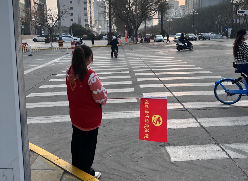 自3月6日起,学校学生志愿者身着红色马甲,在渭南城各路口于早、中、晚三班次开展路口站岗执勤活动。