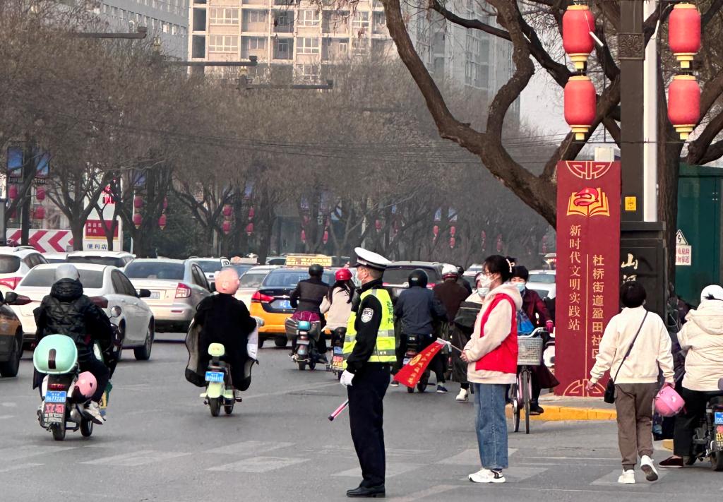 志愿者们手持小红旗在路口站岗指挥,劝导行人遵守交通信号指示灯、不随意横穿马路,对骑车不戴头盔等不文明交通行为进行及时纠正;引导行人及车辆自觉遵守交通规则,养成依法行驶、文明出行的良好习惯,争做文明出行的示范者、先行者、践行者;遇到行动不便的老人过马路时,他们及时上前帮扶。整个过程,志愿者们始终面带微笑,文明执勤,树立了良好的团员志愿者形象,他们昂扬向上的精神面貌,给渭南市城区增添了一道靓丽的风景。