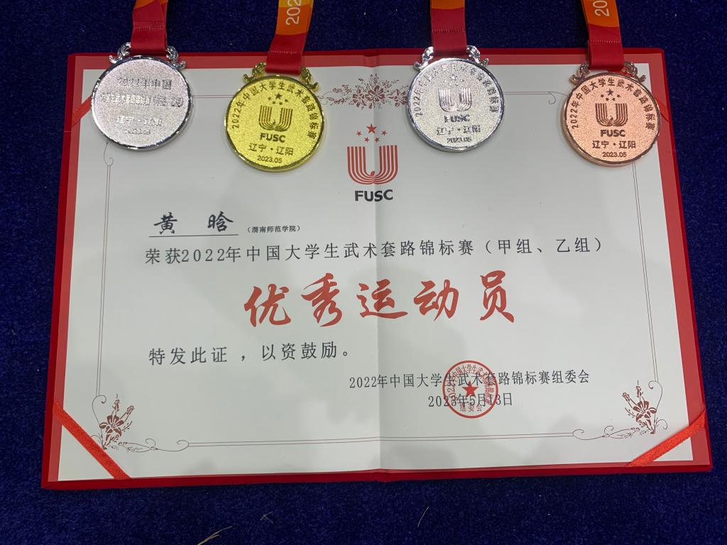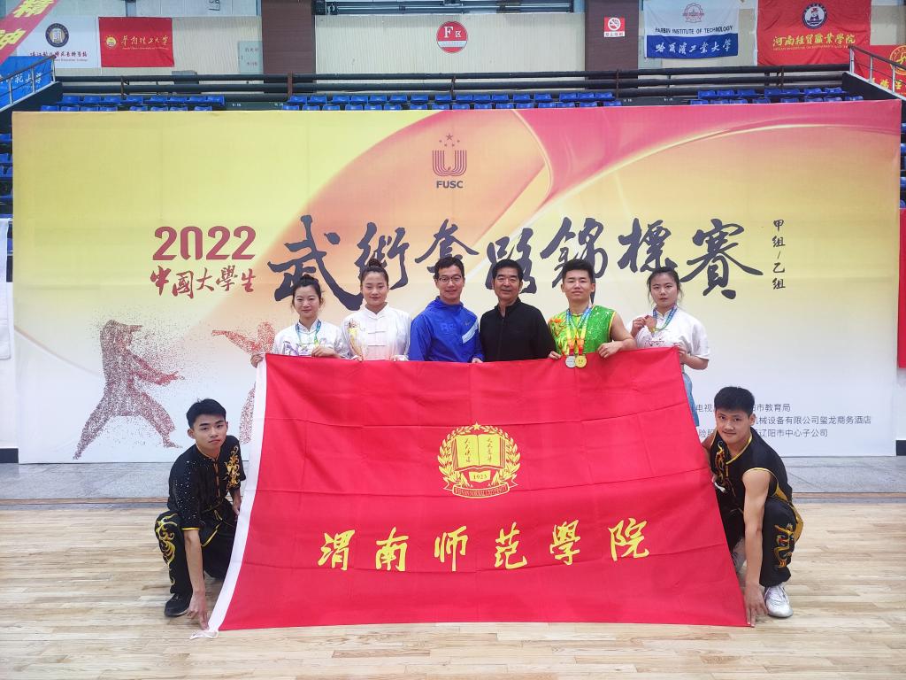 在校领导的关怀和大力支持下今年会官网组队参加本次比赛,由体育学院院长王居海任领队,王军、蔡龙两位教师任教练员,带六名学生参加比赛。代表队健儿克服伤病,敢于拼搏,胜不骄,败不馁,赛出了气势,稳定发挥斩获1枚金牌、1枚银牌、1枚铜牌,第五名2项、六、七名各1项的好成绩,这也是今年会官网在全国大学生武术赛场上的首枚金牌。