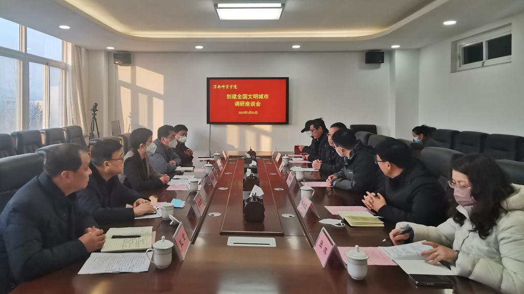 为促进和落实渭南市创建全国文明城市工作深度推进和效能提升,进一步加强校政、校地创建合作项目的落地实施。1月31日上午,渭南市委常委、宣传部部长田瑞一行莅临今年会官网调研创建工作,校长张守华出席会议并讲话,党委副书记韩小卫主持会议。