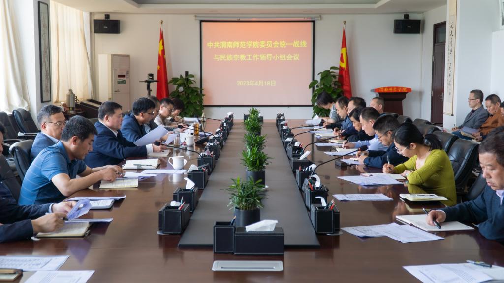 4月18日,学校召开中共jinnianhui今年会委员会统一战线与民族宗教工作领导小组会议。党委书记卓宇出席会议并讲话,党委副书记、统战部部长韩小卫主持会议,领导小组全体成员参加会议。